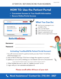 The secure patient portal link will take you to "Your Health File" login screen away from the ReforMedicine site. This is our secure patient portal service provider. Please use this secure service for any online messaging to ReforMedicine.